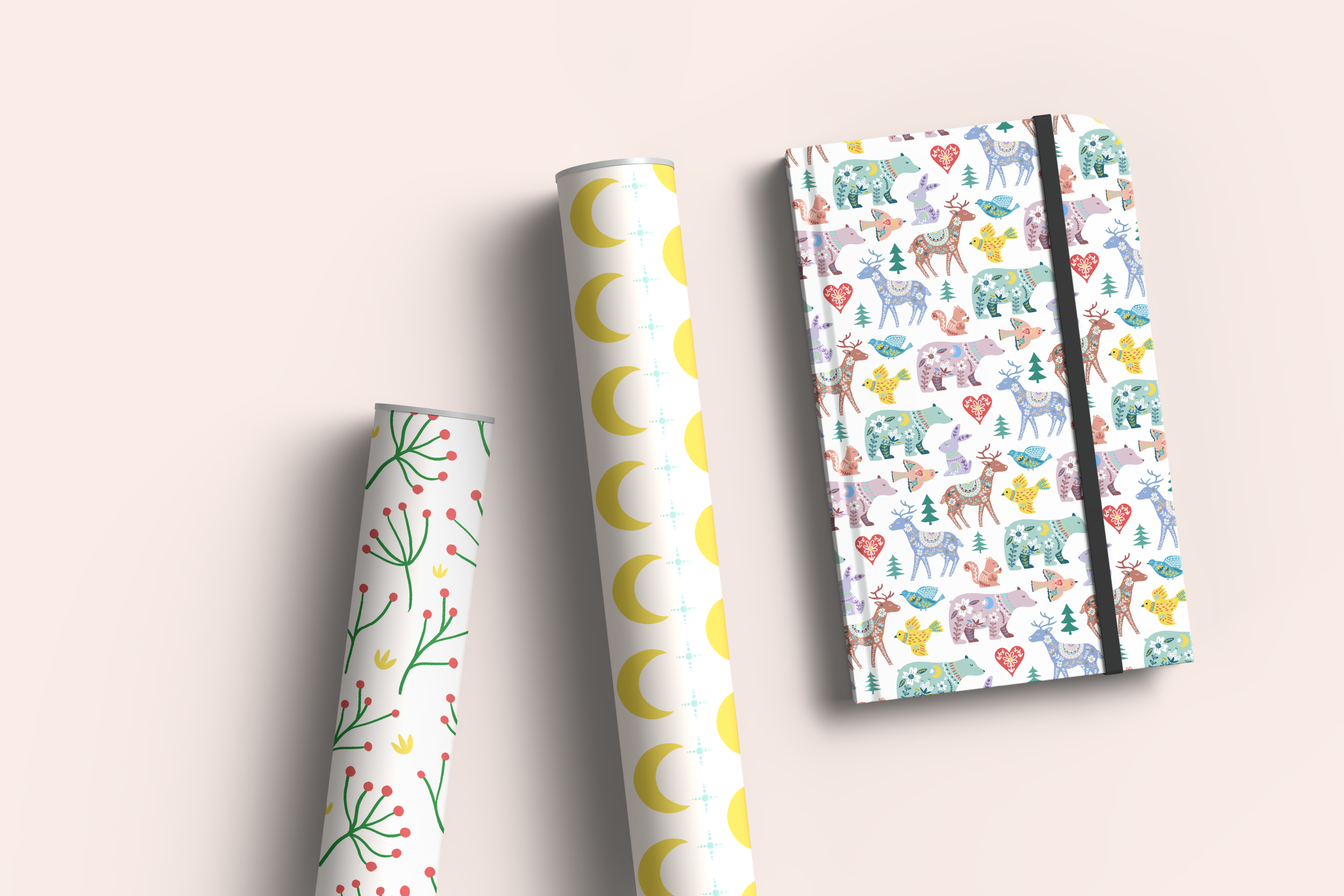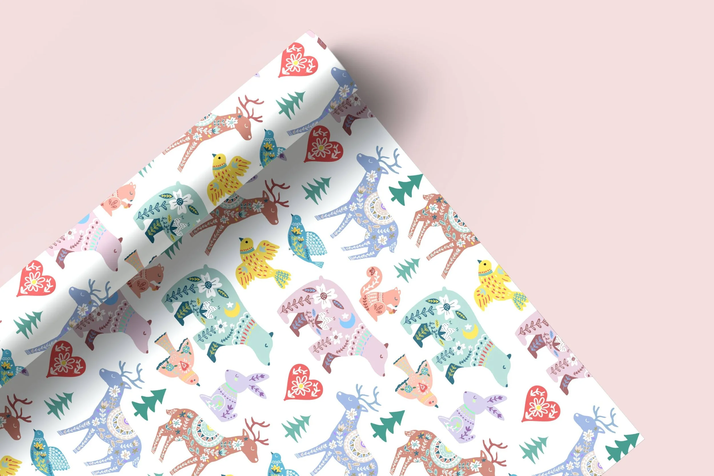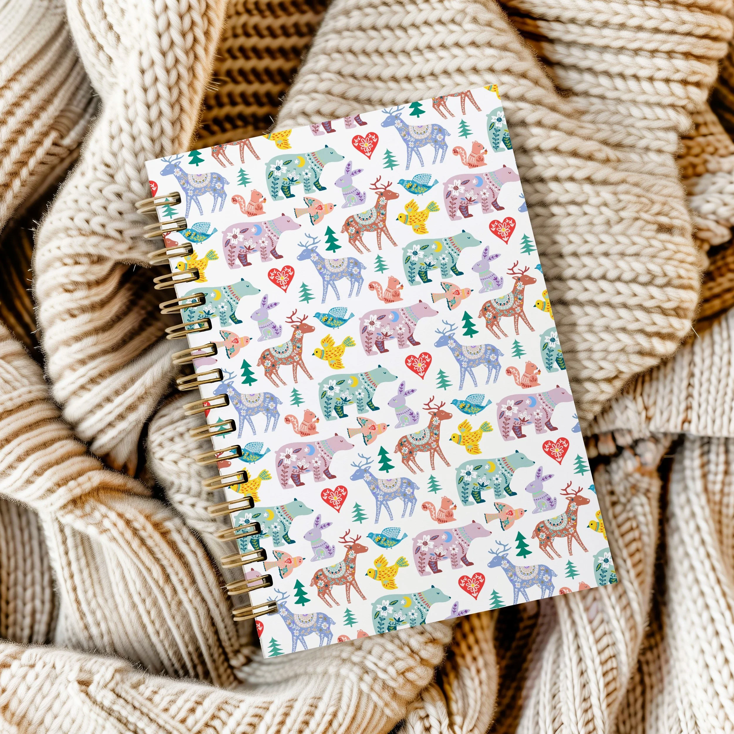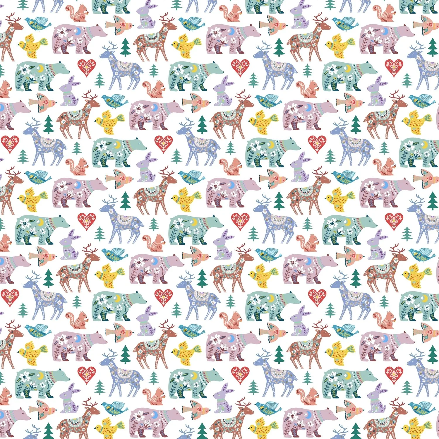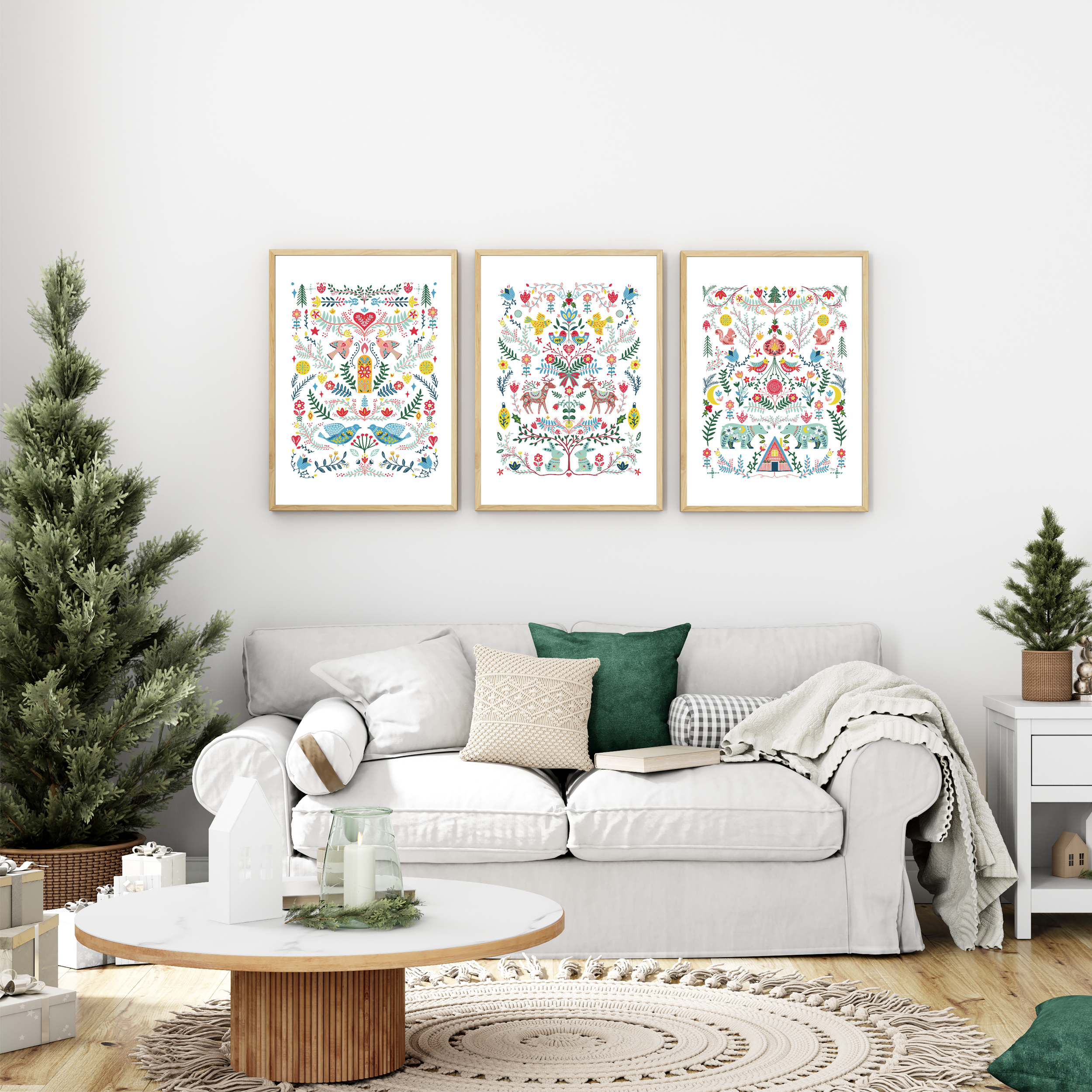 This collection captures the serene yet vibrant charm spirit of Scandinavian folk art, featuring cozy cabins, woodland animals, and moonlit Nordic forests. Each design evokes a sense of peace and warmth, with intricate details of folk birds, deer, bears (and a Christmas tree) that symbolize a deep connection to nature.