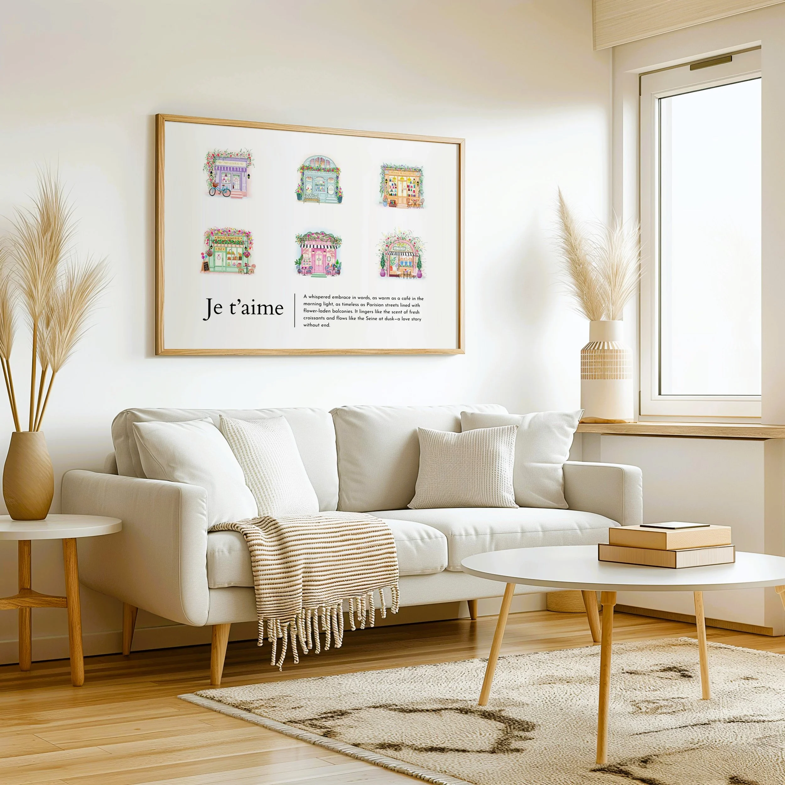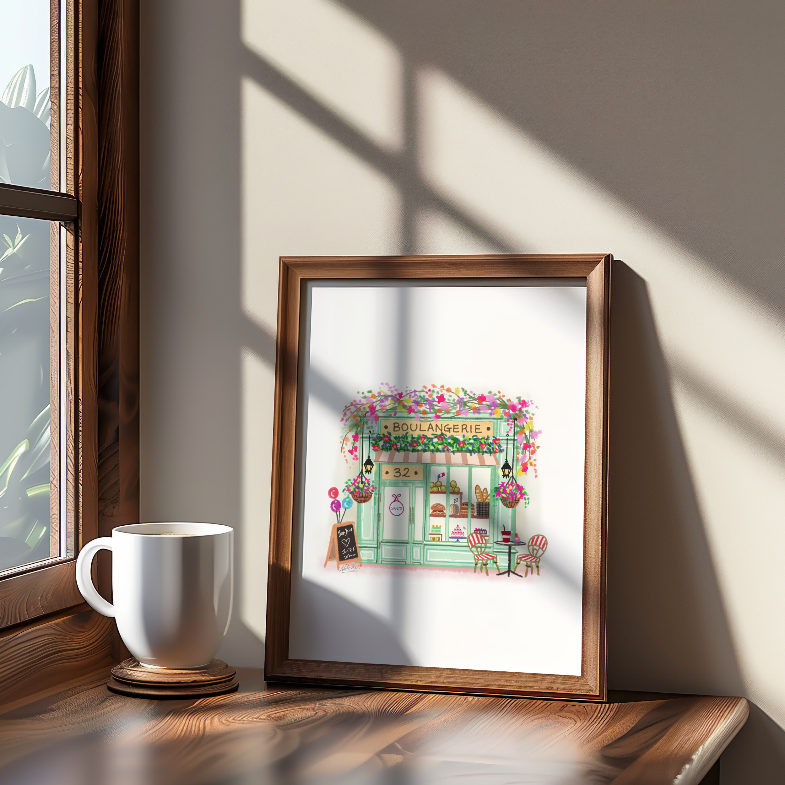 The Collection captures the elegant yet effortless spirit of Parisian city life with cozy storefronts in pastel hues and intricate details. Each illustration brings beloved spots to life, from bakeries to flower shops, reflecting both timeless architecture and the small pleasures of city life.