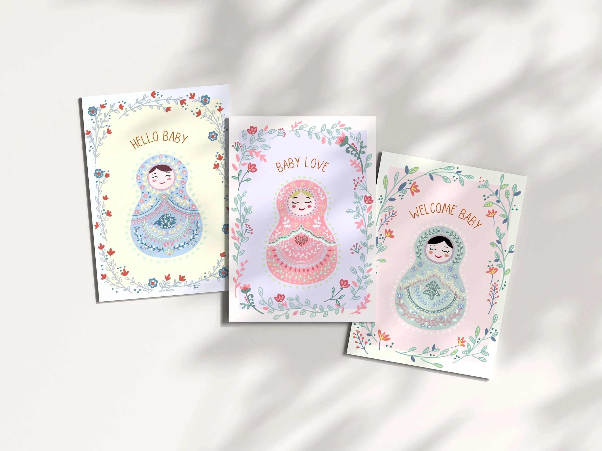 A joyful celebration of childhood wonder, global charm, and colorful storytelling - From cheerful winter seagulls, to Parisian dachshunds trotting past the Eiffel Tower, and the timeless magic of Matryoshka nesting dolls, each design is lovingly illustrated to spark imagination and warmth. Available in a variety of colors and perfect for everything from wall art to fabric prints, these playful patterns are designed to add a touch of delight to nurseries, playrooms, and beyond.