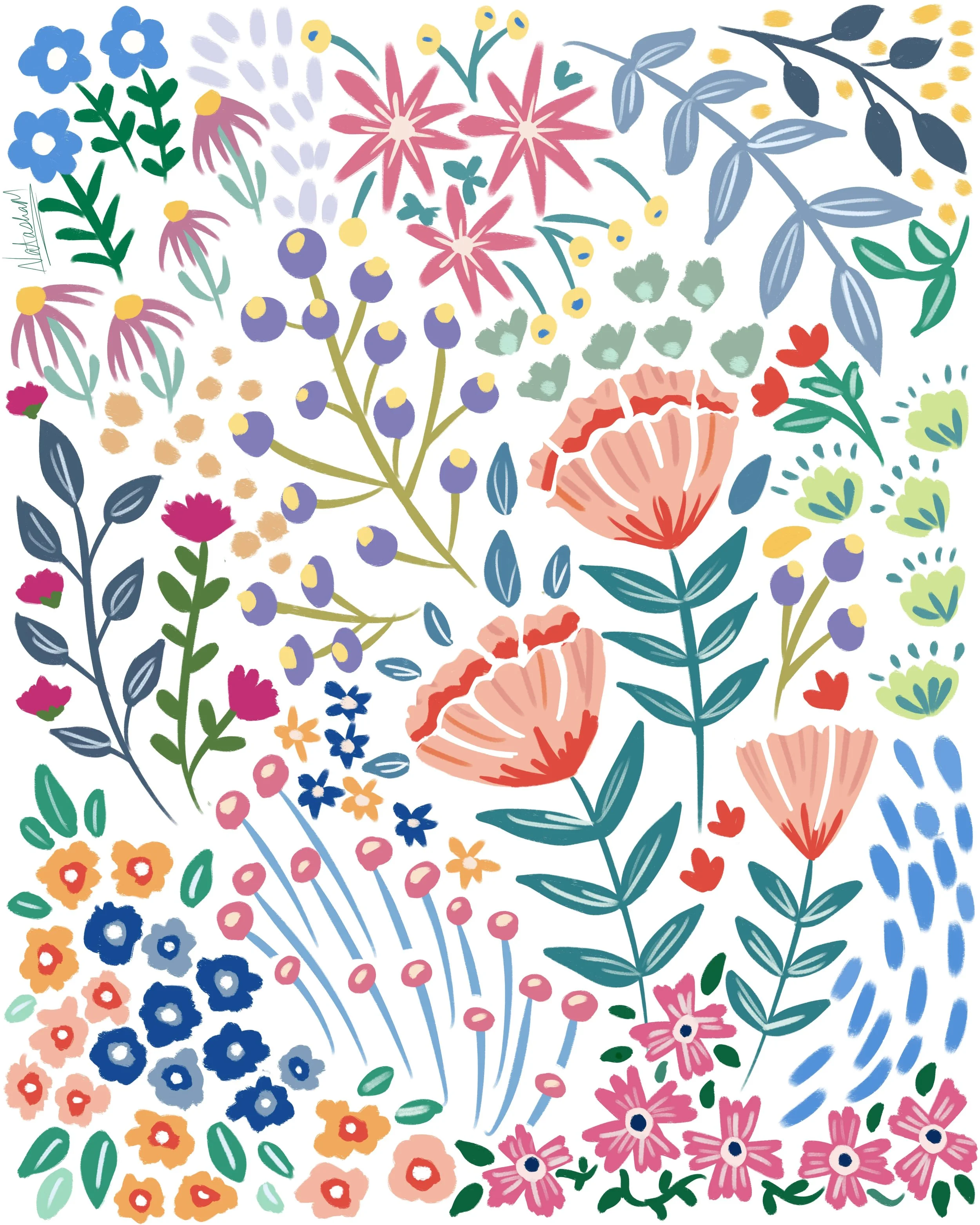 A celebration of color, joy, and nature, the mini collection features hand-drawn botanical illustrations bursting with spring and summer charm. These stylized flowers are painted with a modern folk-art touch and a keen eye for balance, movement, and color combination. Designed with flexibility in mind, these artworks are available both as standalone floral compositions and with optional typography.