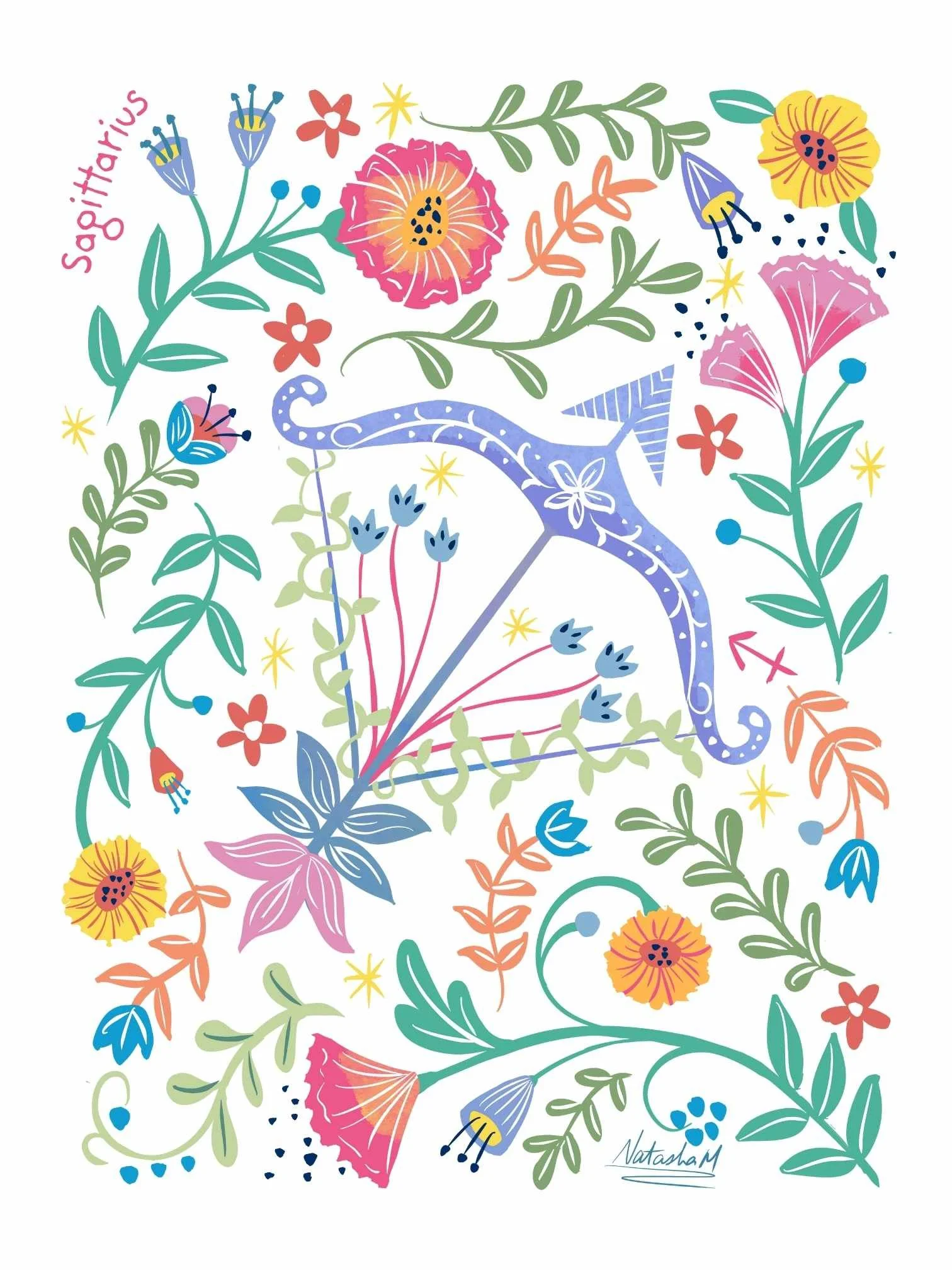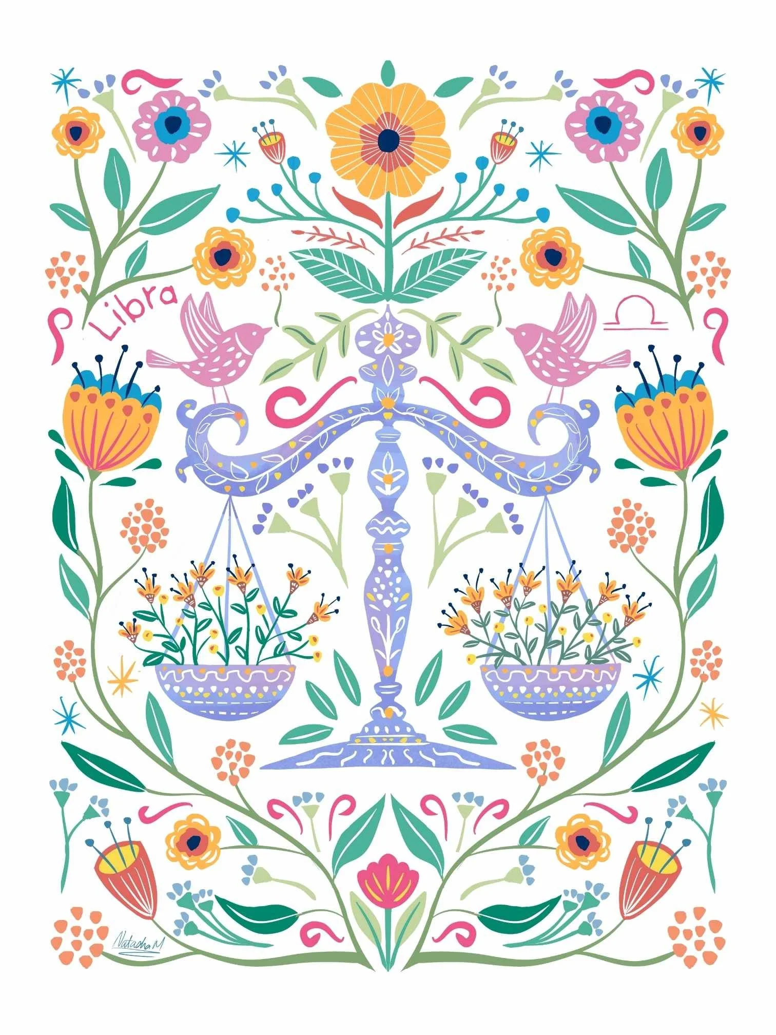 Celebrate the magic of the stars with this whimsical new 2025 collection of zodiac illustrations, where astrology meets folk art. Each piece reimagines the twelve zodiac signs through a cozy, floral lens—blending celestial symbols with hand-drawn botanicals, starry skies, and decorative folk motifs.